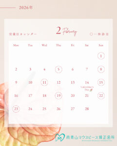 news 2026.02.06 🗓️2月の診療スケジュールについて 2026年2月11日(水・祝)・2月23日(月・祝)は祝日ですが、 その週の木曜日は通常通り診療いたします。 祝日がある週は診療スケジュールが通常と異なりますので、 ご予約の際はご確認をお願いいたします。 ご不明な点がございましたら、当院までお気軽にご連絡ください。 ️医療法人雅会_南青山マウスピース矯正歯科 長野院 facebook Line twitter google